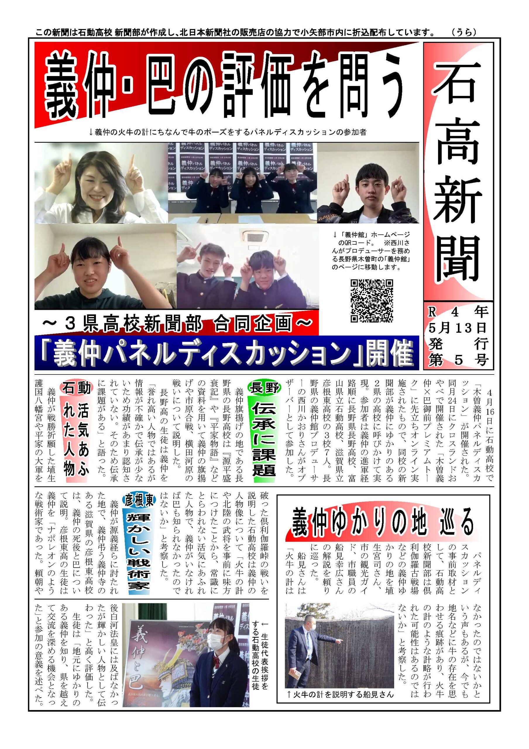 新聞やテレビなどのメディアに取り上げていただいたのをご存知の方もいらっしゃって、今回の義仲と巴に関する高校生の活動を評価していただけたことはこれ以上ない喜びです。