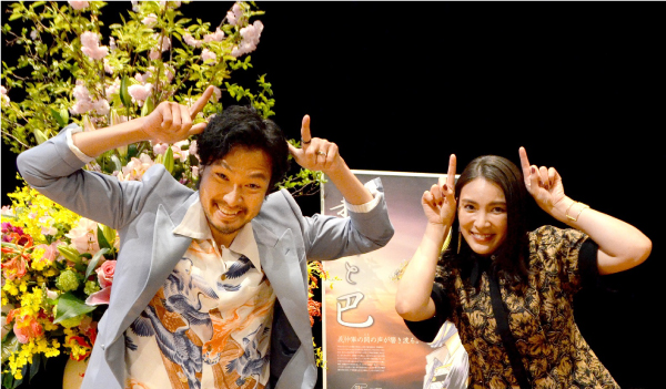 ↑プレミアムトーク後に、火牛の計にちなみ牛のポーズをする青木崇高さん(左)と秋元才加さん(右)