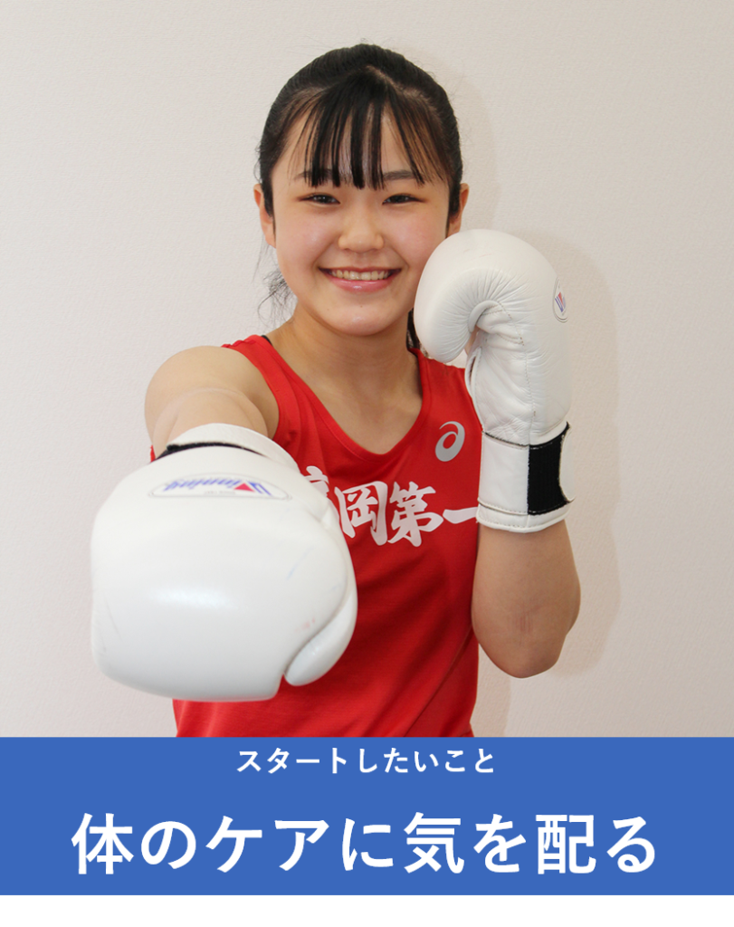 けがをせず、長く競技を続けるためにもマッサージやストレッチをして体を大切にしたいです。