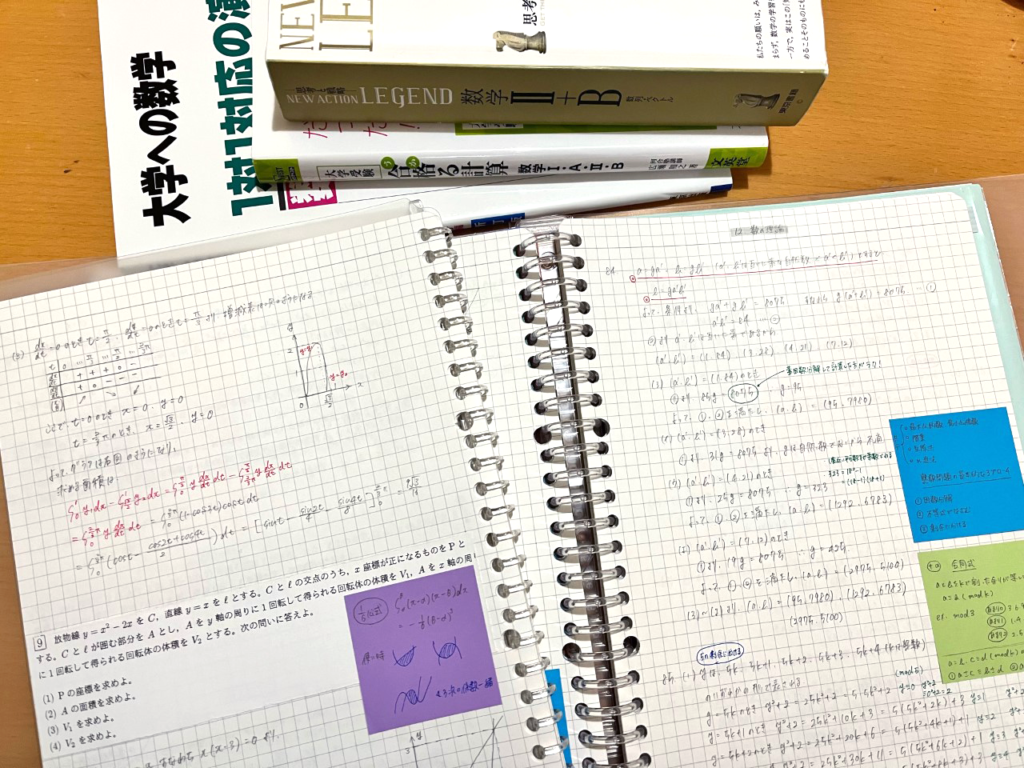 公式や解き方のポイントを付箋に書いてノートに貼り、それを理解し終わったら別のノートに付箋を貼り替えることで、自然と重要なポイントを集められるようにしました。