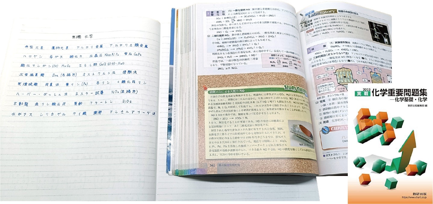 もともと化学が好きで、高校1年生から自宅で予習して授業に臨んでいました。