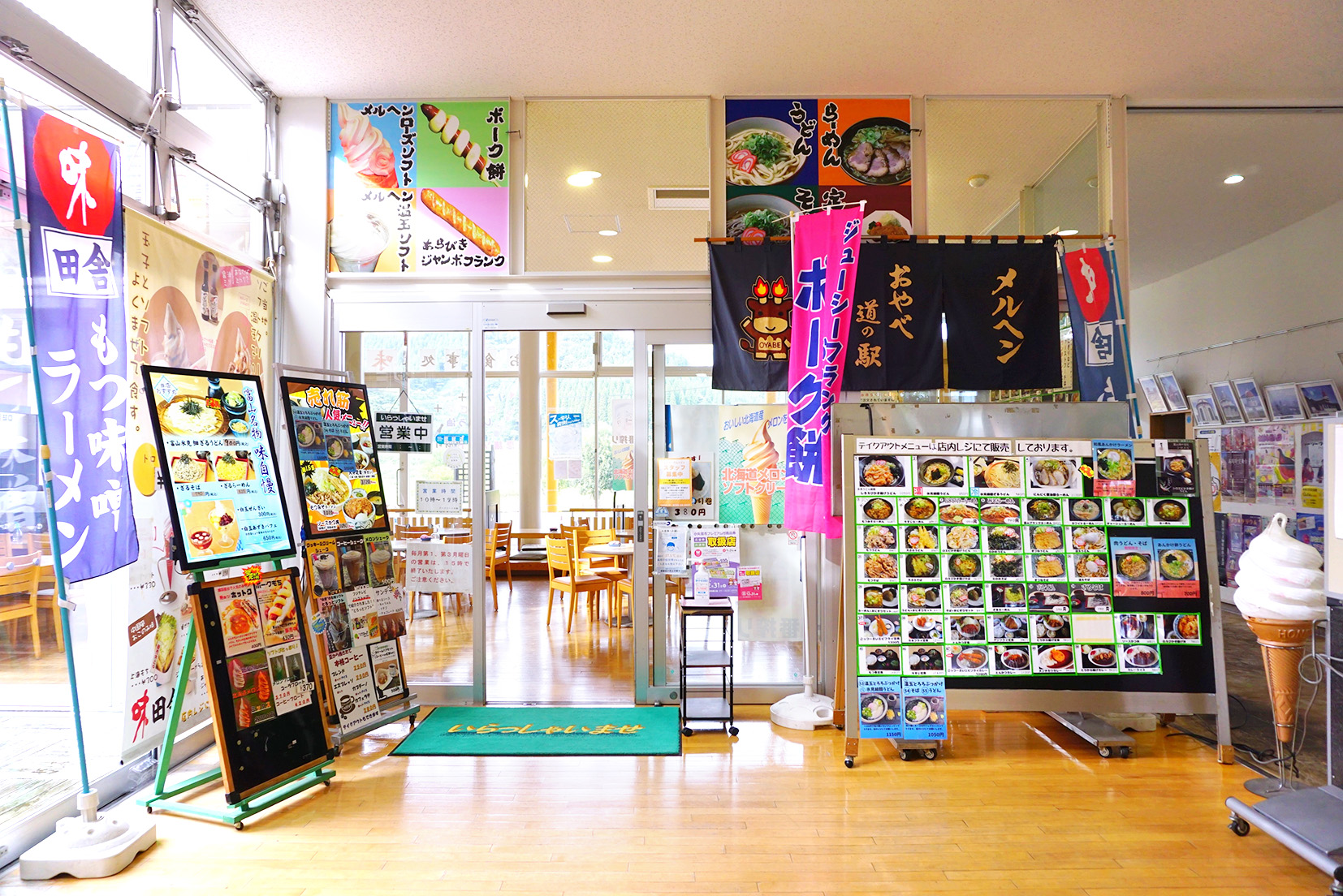 道の駅メルヘン小矢部内にあるフードコート「メルヘン田舎」に、ユニークな組み合わせのソフトクリームがある。